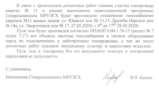 Сєвєродонецьке МРУЕГГ АТ “ЛУГАНСЬКГАЗ” повідомляє про проведення ремонтних робіт