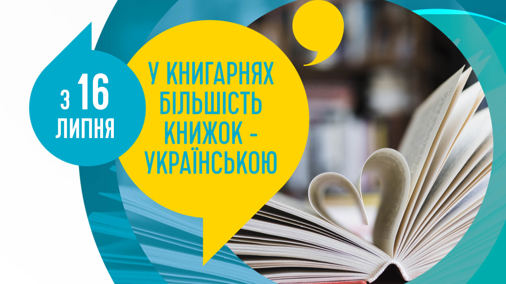 Частка книжкових видань державною мовою у загальній кількості назв книжкових видань, наявних у продажу в кожній книгарні або іншому закладі, що здійснює книгорозповсюдження, має становити не менше 50 відсотків.