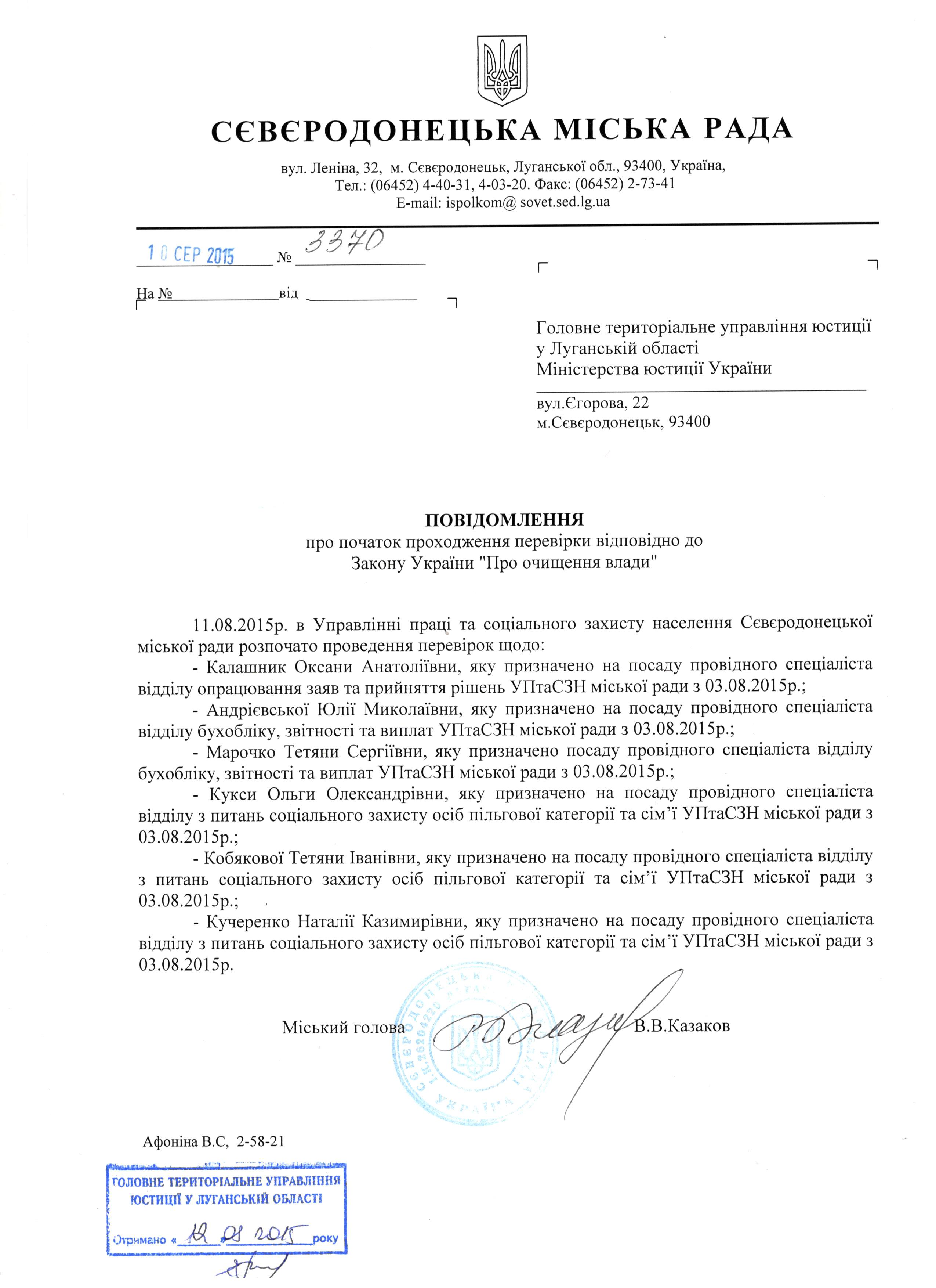 Калашник О.А., яку призначено на посаду провідного спеціаліста відділу опрацювання заяв та прийняття рішень УПтаСЗН міської ради; Андрієвської Ю.М., яку призначено на посаду провідного спеціаліста відділу бухобліку, звітності та виплат УПтаСЗН міської ради; Марочко Т.С., яку призначено на посаду провідного спеціаліста відділу бухобліку, звітності та виплат УПтаСЗН міської ради; Кукси О.О., яку призначено на посаду провідного спеціаліста відділу з питань соціального захисту осіб пільгової категорії та сім’ї УПтаСЗН міської ради; Кобякової Т.І., яку призначено на посаду провідного спеціаліста відділу з питань соціального захисту осіб пільгової категорії та сім’ї УПтаСЗН міської ради; Кучеренко Н.К., яку призначено на посаду провідного спеціаліста відділу з питань соцзахисту осіб пільгової категорії та сім'ї УПтаСЗН