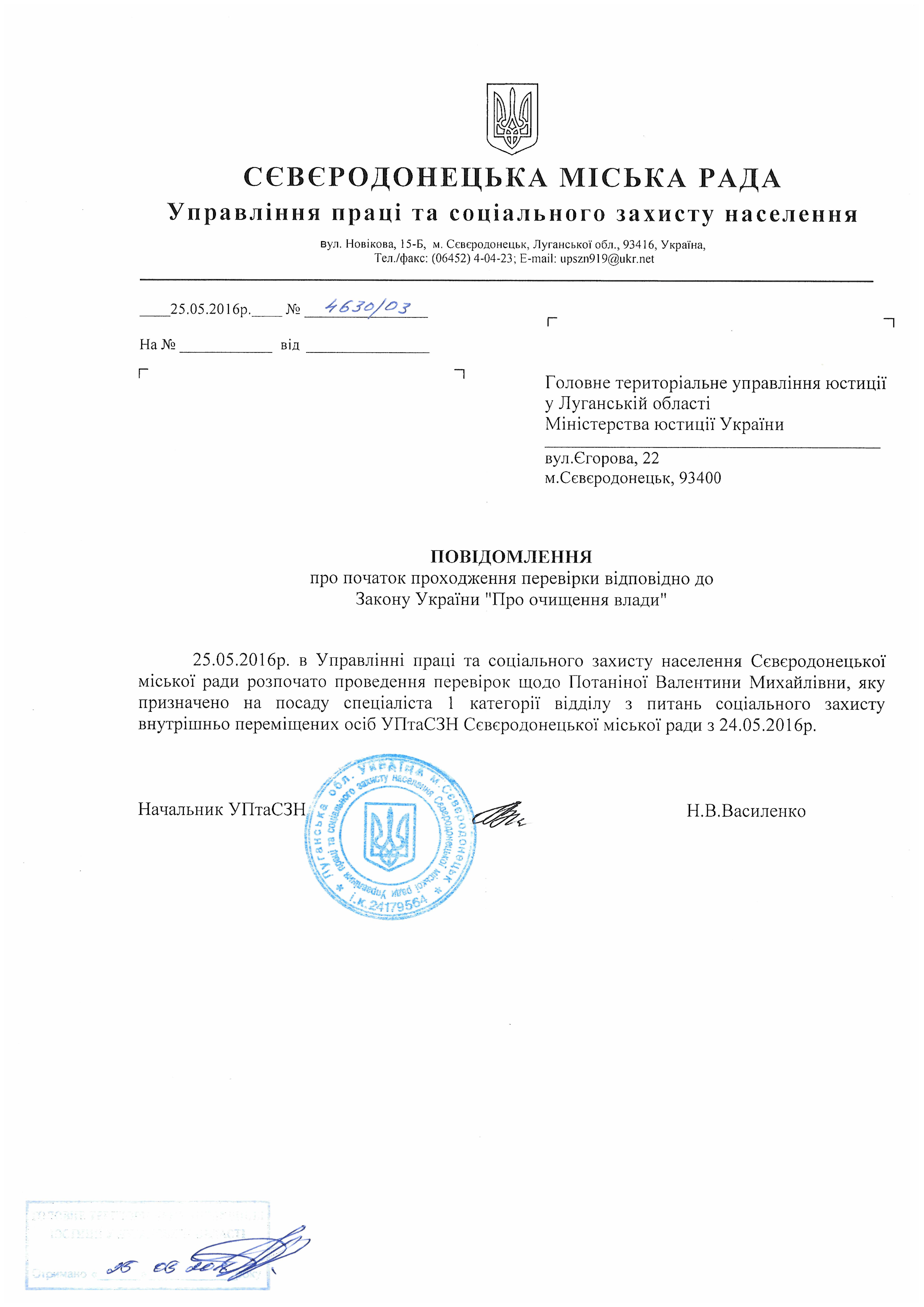 Потаніна В.М., спеціаліст 1 категорії відділу з питань соціального захисту внутрішньо переміщених осіб УПтаСЗН Сєвєродонецької міської ради