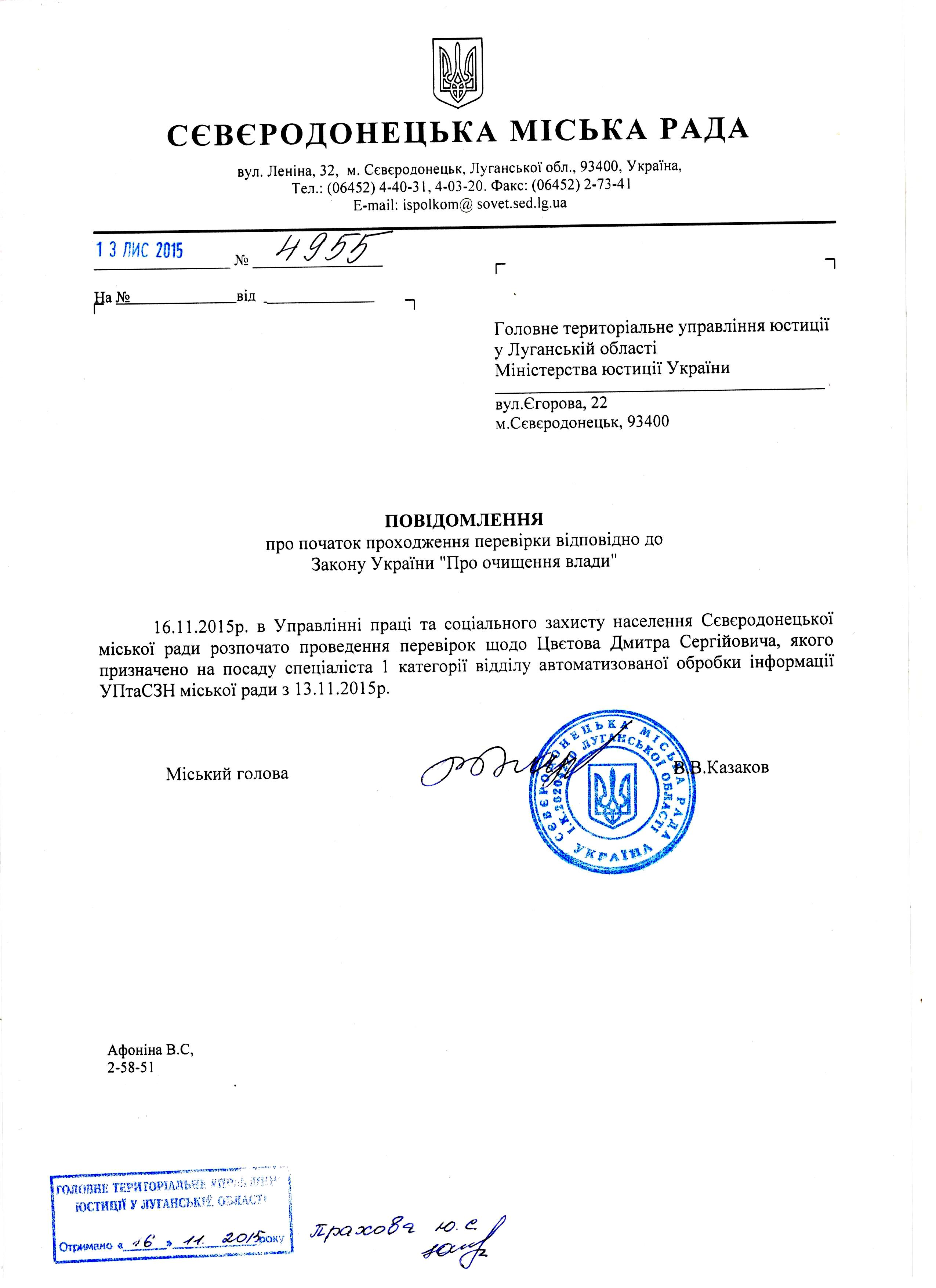 Оперативний черговий Сіверськодонецької міської ВА:
