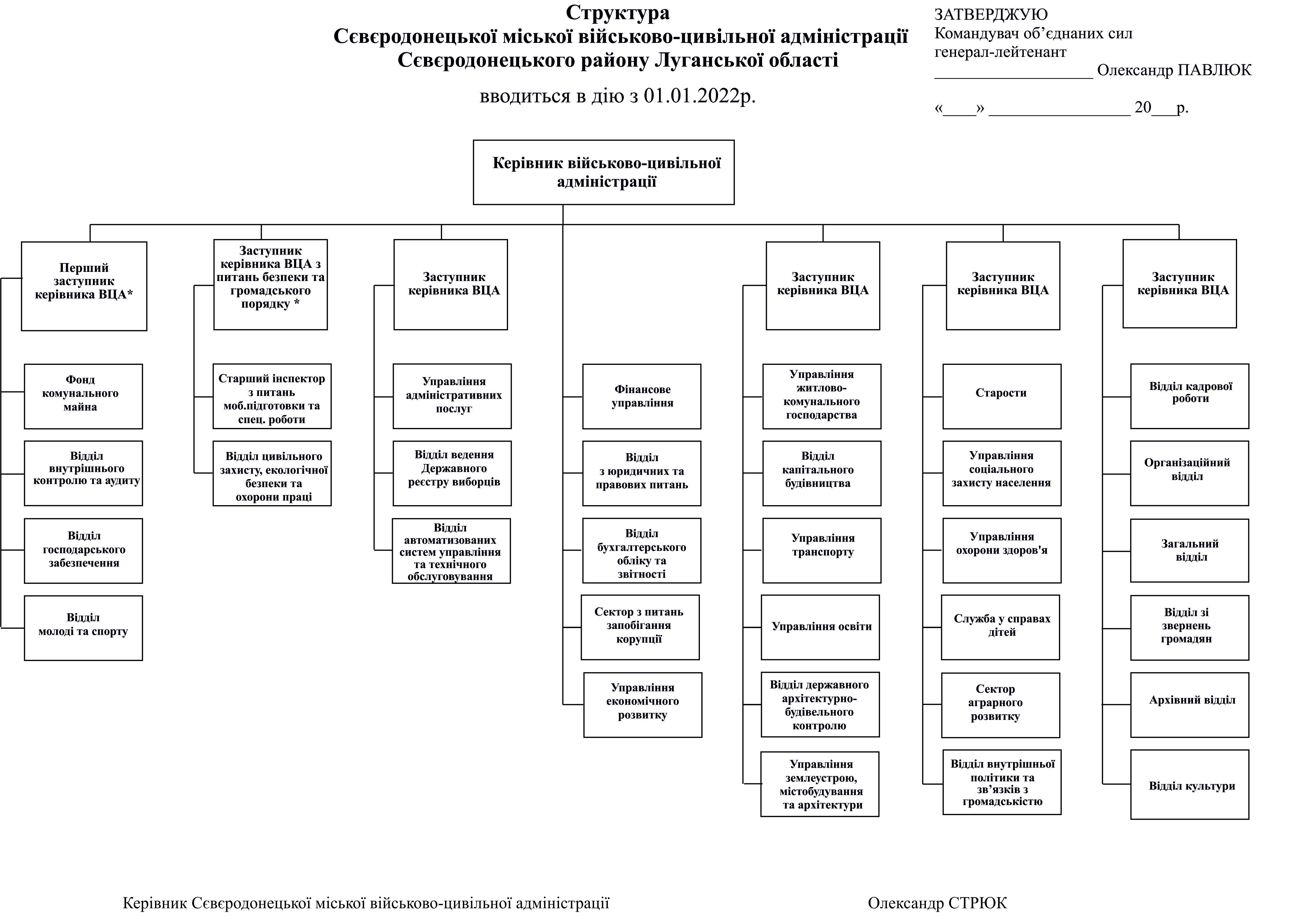Про введення в дію структури та штатного розпису Сєвєродонецької міської військово-цивільної адміністрації Сєвєродонецького району Луганської області