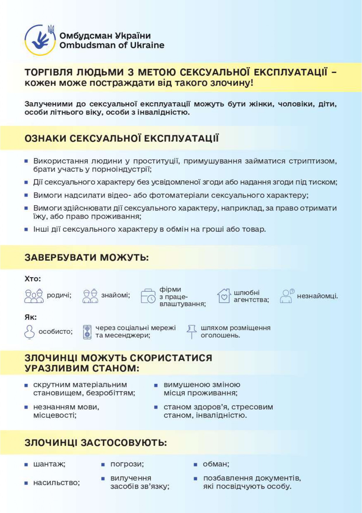 Омбудсмен України: Торгівля людьми - кожен може постраждати від цього злочину. Як діяти та куди звертатись
