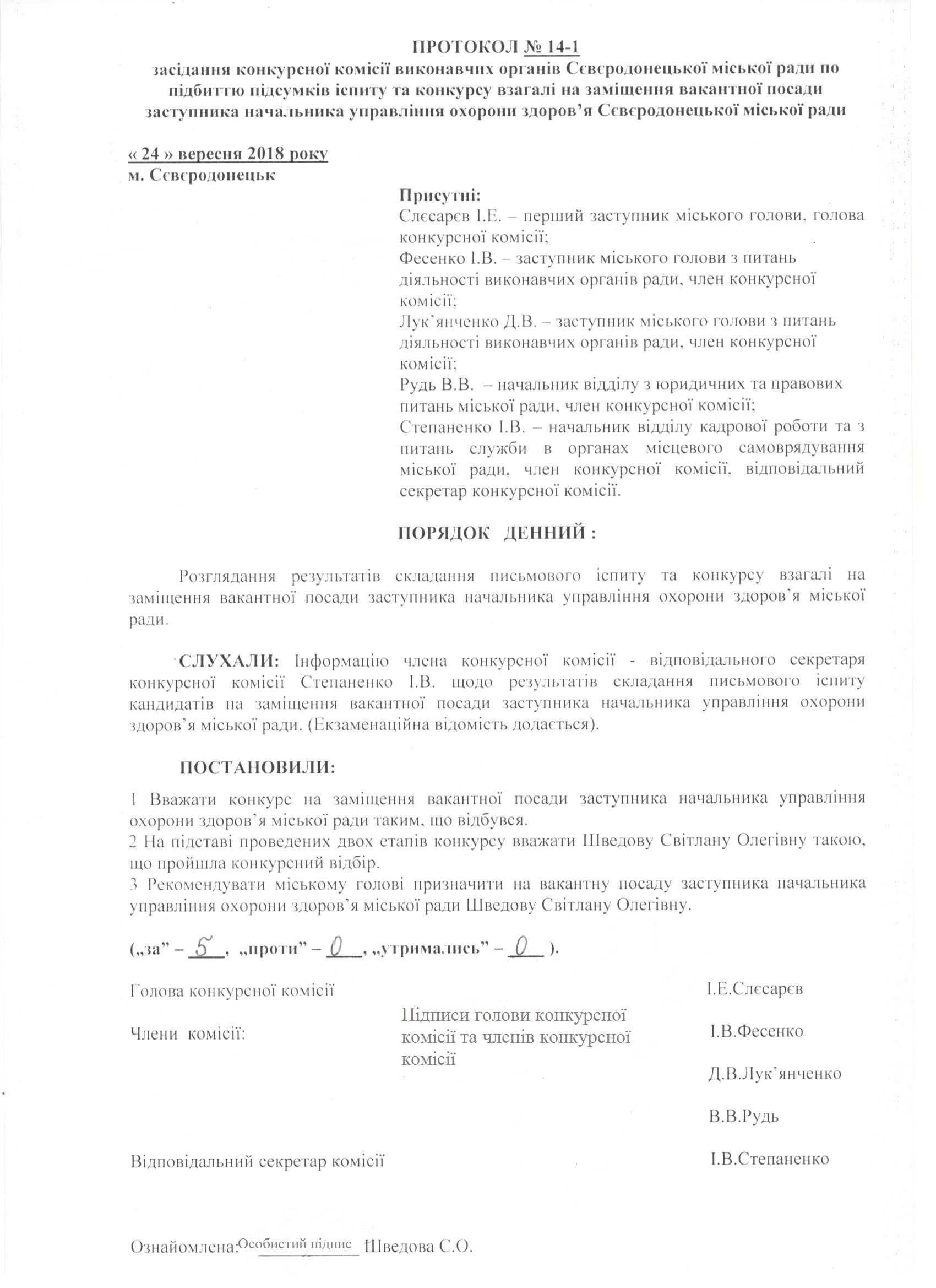 Протоколи конкурсної комісії виконавчих органів Сєвєродонецької міської ради по підбиттю підсумків іспиту та конкурсу взагалі