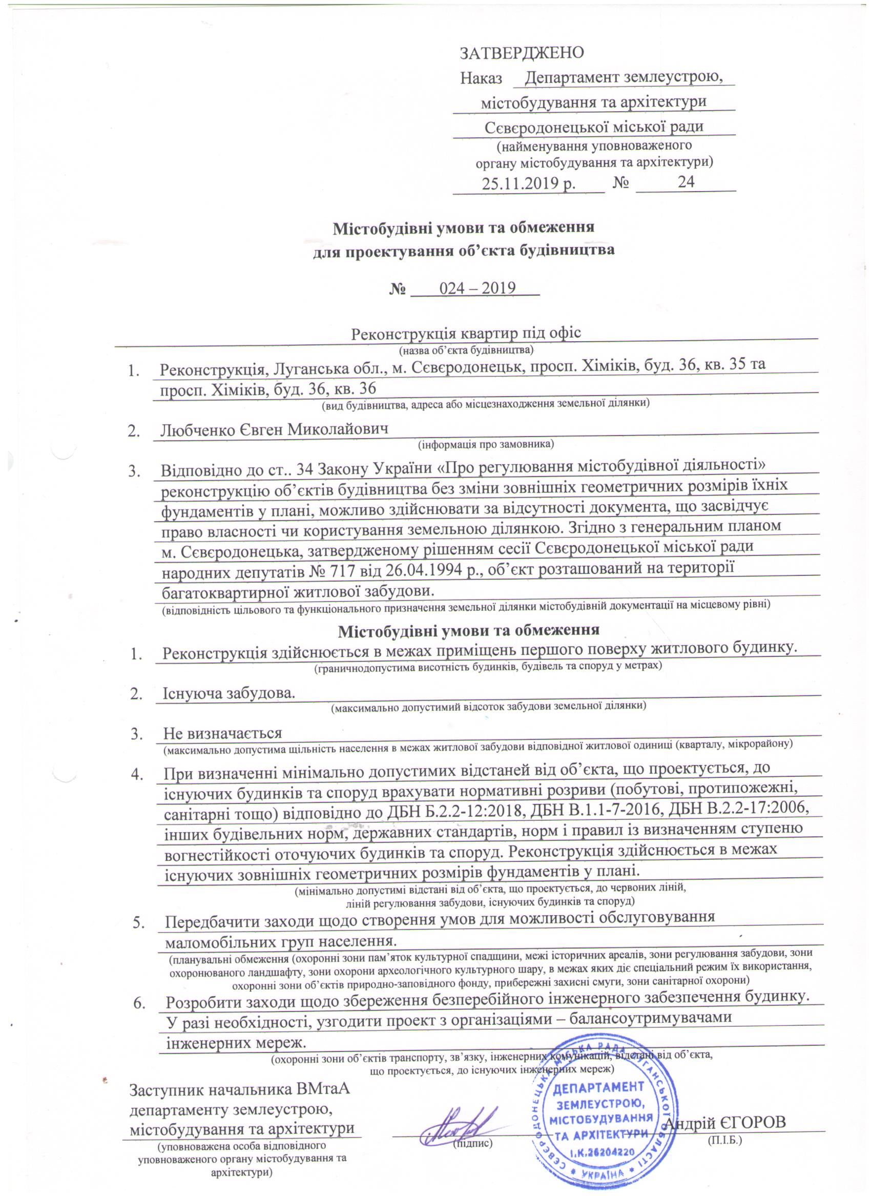 м.Сєвєродонецьк, просп. Хіміків, буд. 36, кв. 35 та просп. Хіміків, буд. 36, кв. 36