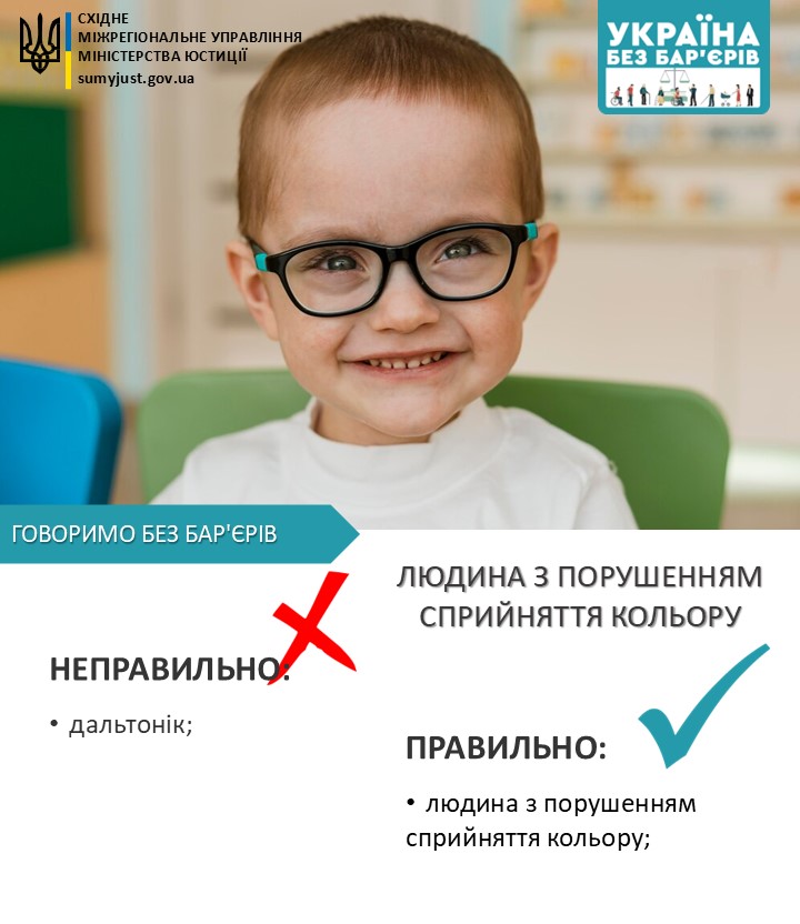 Разом з Довідником безбар’єрності – ініціативою Першої леді Олени Зеленської, щодня вчимося толерантності, тож коли нам потрібно акцентувати, що людина має порушення сприйняття кольору, ми так і говоримо.