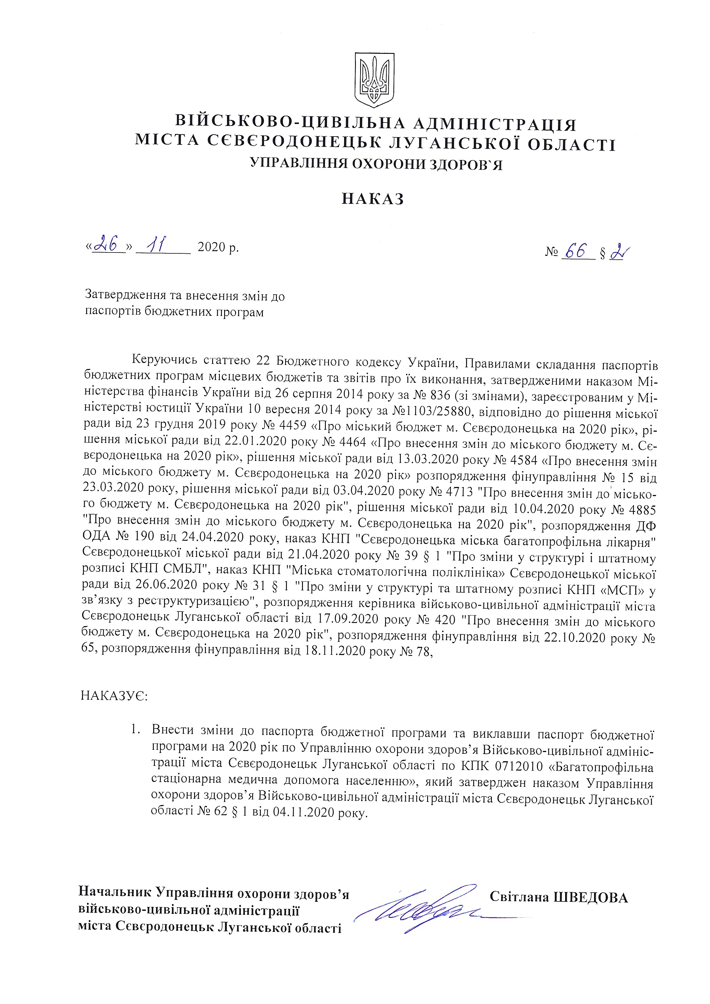 Наказ від 26.11.2020 року та паспорт бюджетної програми