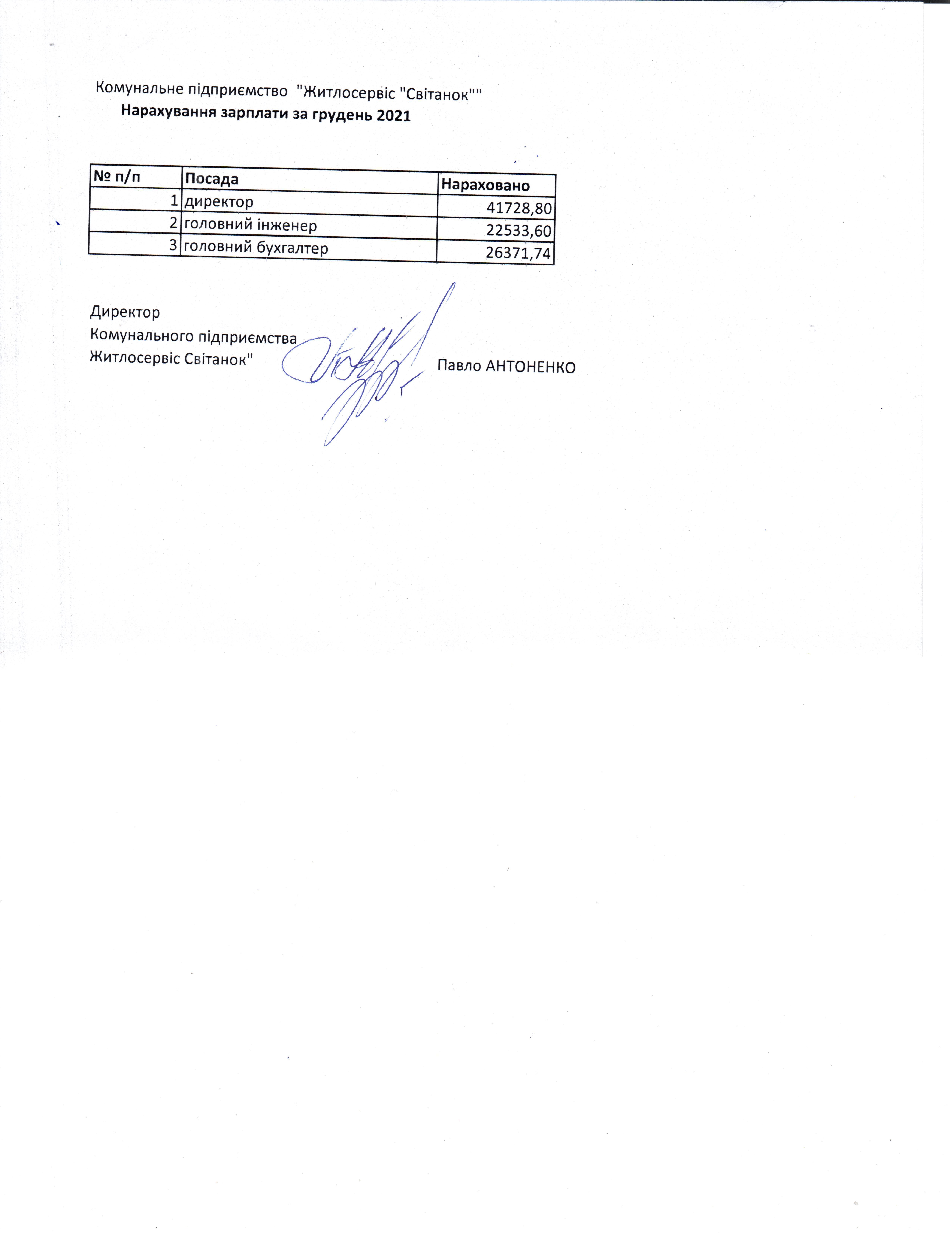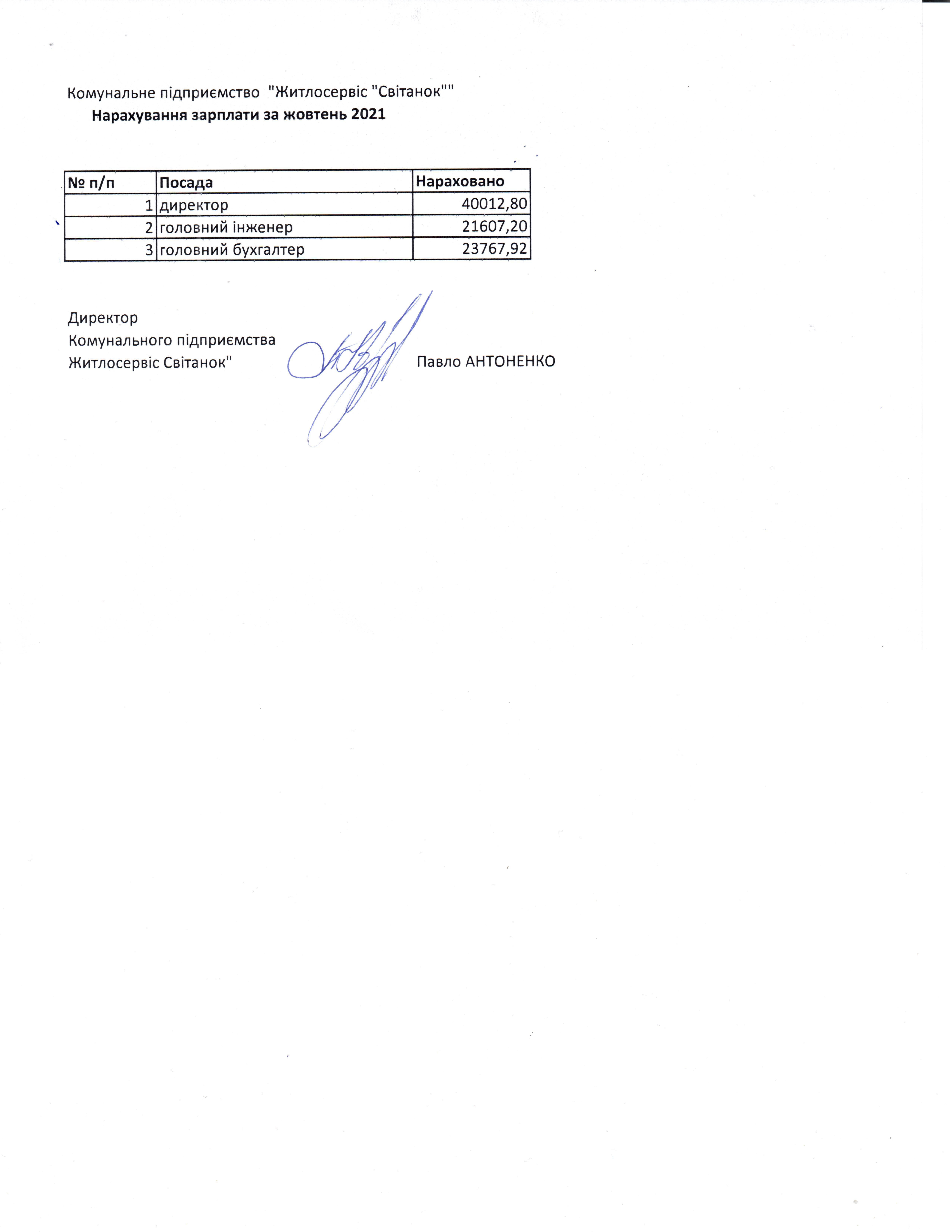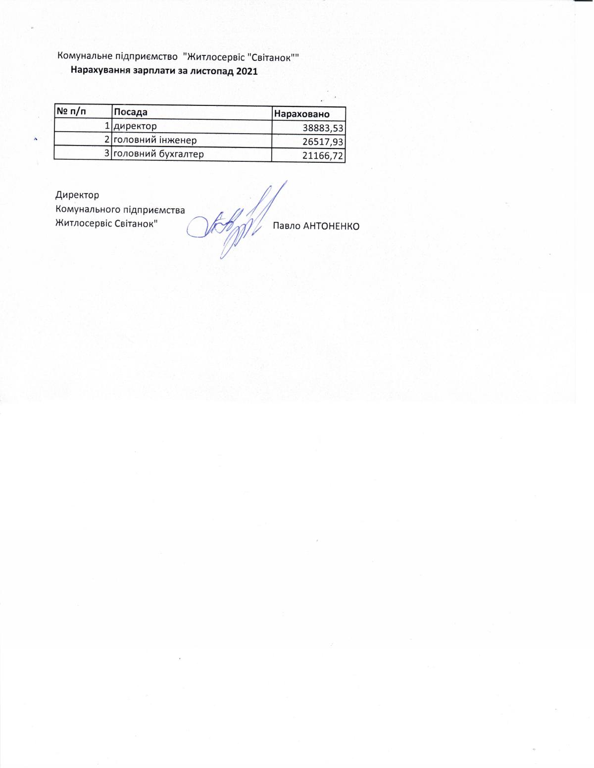 Інформація про структуру, принципи формування та розмір оплати праці керівника та заступників керівника КП "Житлосервіс "Світанок"